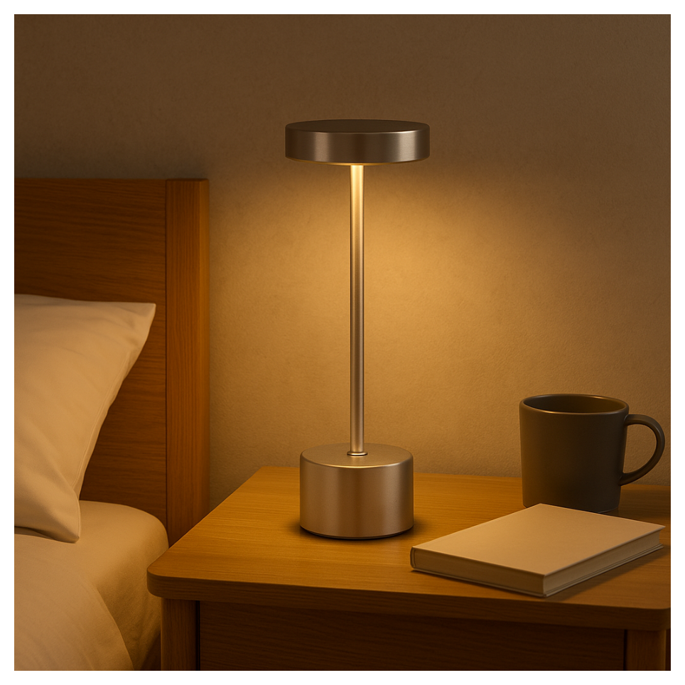 Gracias a su batería recargable por USB-C y su diseño inalámbrico y portátil, puedes usarla en cualquier lugar: dormitorio, salón, oficina o incluso al aire libre. Su luz suave y sin parpadeos protege la vista y aporta una sensación acogedora en cada rincón.