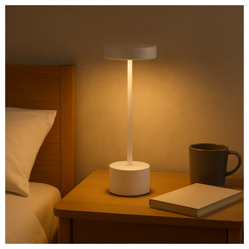 Lámpara LED táctil recargable con diseño minimalista y tres tonos de luz (cálido, neutro y frío). Su brillo es totalmente regulable y ofrece una iluminación suave que cuida la vista. Ideal para el salón, dormitorio u oficina gracias a su batería USB-C y diseño inalámbrico.