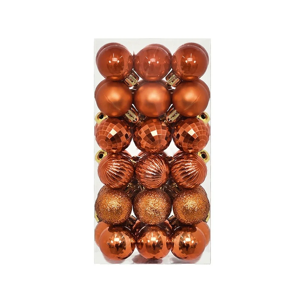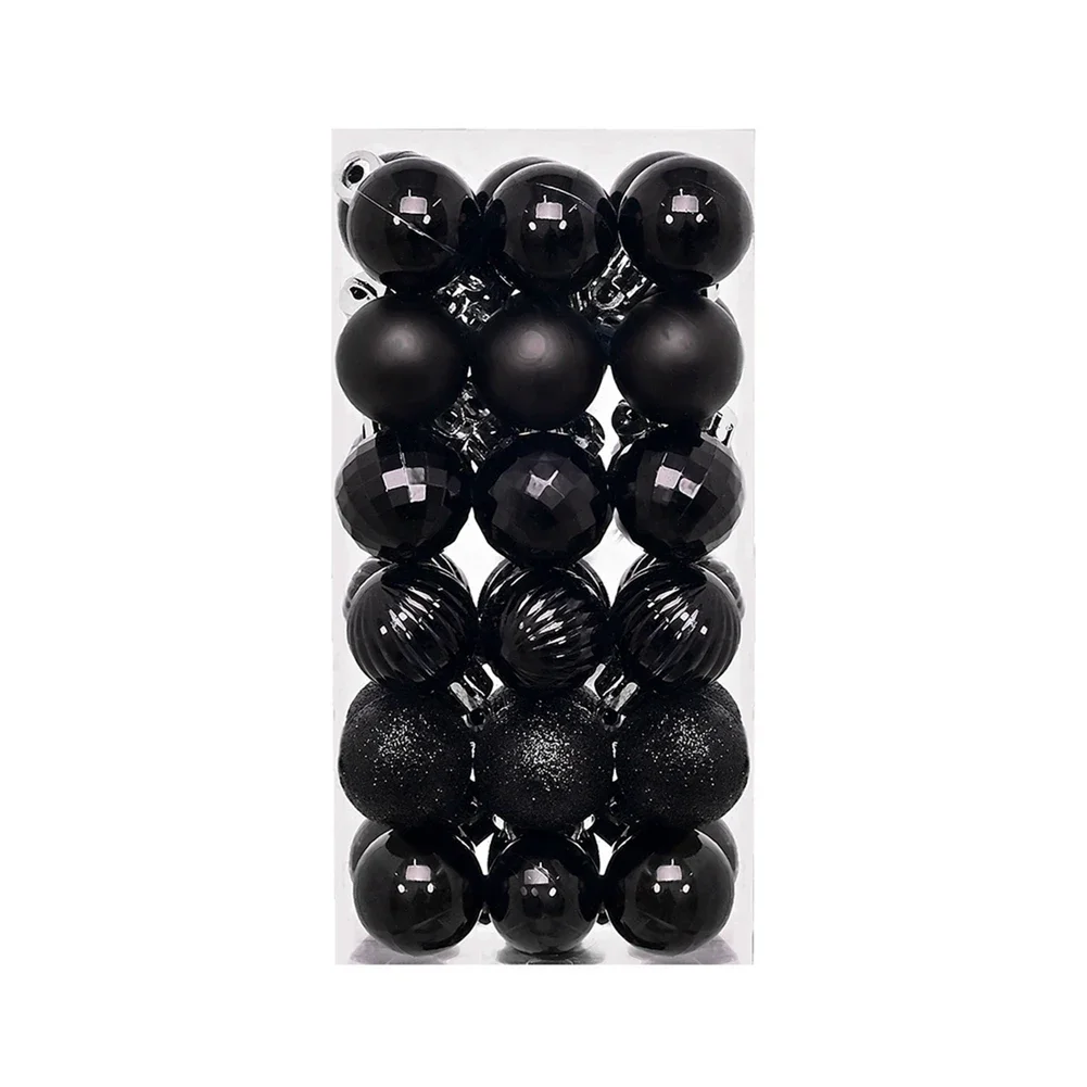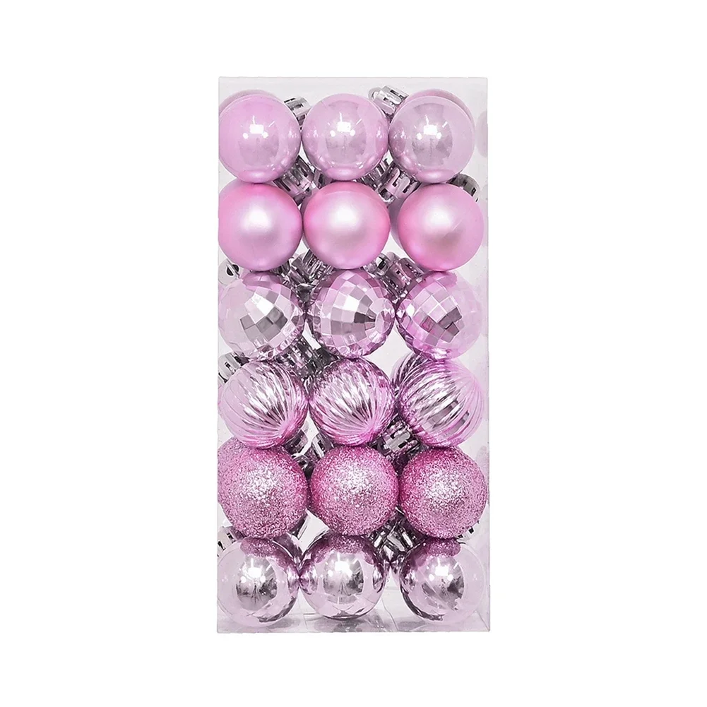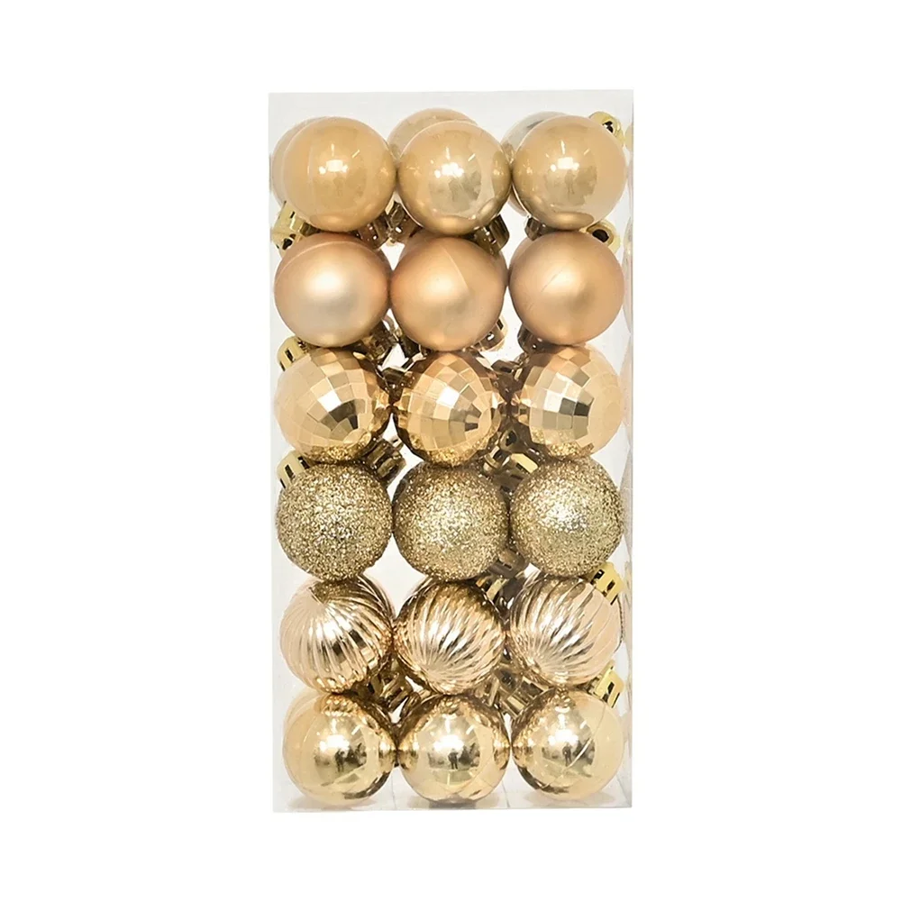 Cada set incluye 36 esferas decorativas con 12 estilos distintos, combinando acabados brillantes, esmerilados, prismáticos, con purpurina y efecto disco. Esta variedad de texturas y reflejos aporta profundidad, dinamismo y elegancia a tu árbol, evitando la monotonía típica de las decoraciones uniformes. El resultado: una estética equilibrada, moderna y llena de vida. ✨