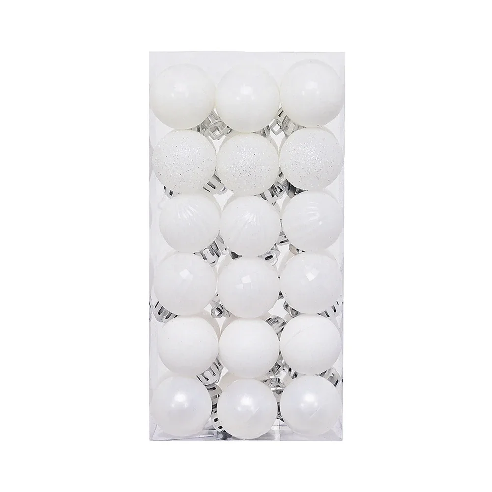 36 bolas decorativas de 3 cm con 12 estilos distintos.